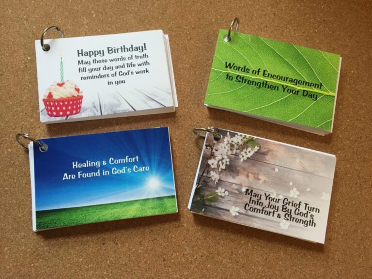Are you looking to grow deeper with Jesus? Do you have a busy schedule and are struggling to find time to spend with Him? Meditate on one of the verses each day and see how the Lord encourages and strengthens you with His truth. It’s also a great way to memorize Scripture. Buy a few of the packs, then place them in frequently travelled areas in your day, such as the kitchen, bathroom, bedroom, car, workplace, and/or your purse. Memorize the verse, and then turn all of the packs over to the next verse once you’ve got the first one done. Repeat until you finish the whole pack. We’ve made various themes to encourage people in situations of illness and grief. Why not give the gift of God’s truth to someone for their birthday? It’s a great little present topper! You can also bless others or yourself with our encouragement…